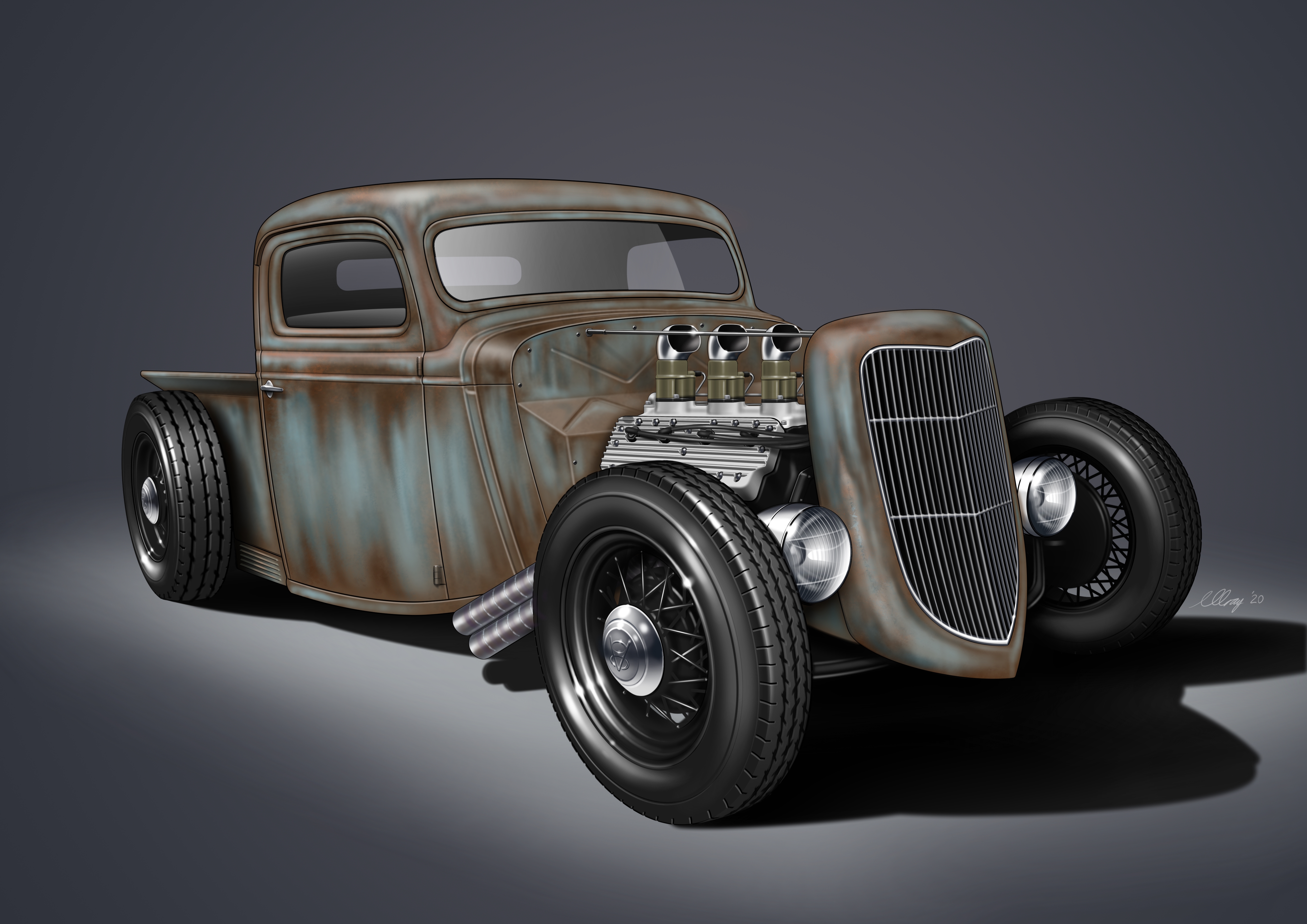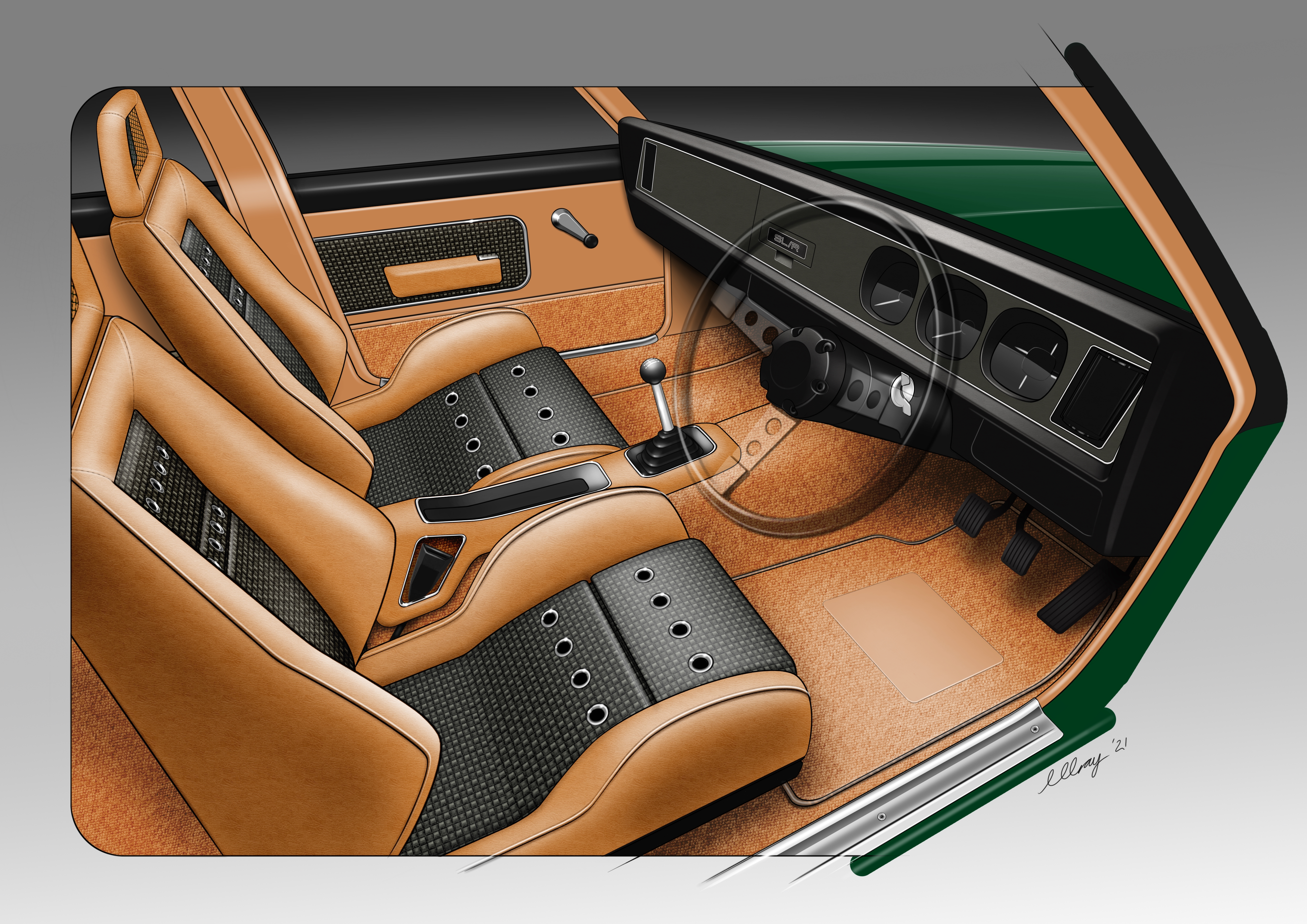 These various Illustrations blend of my skills as an industrial designer with my passion for classic and modified cars.