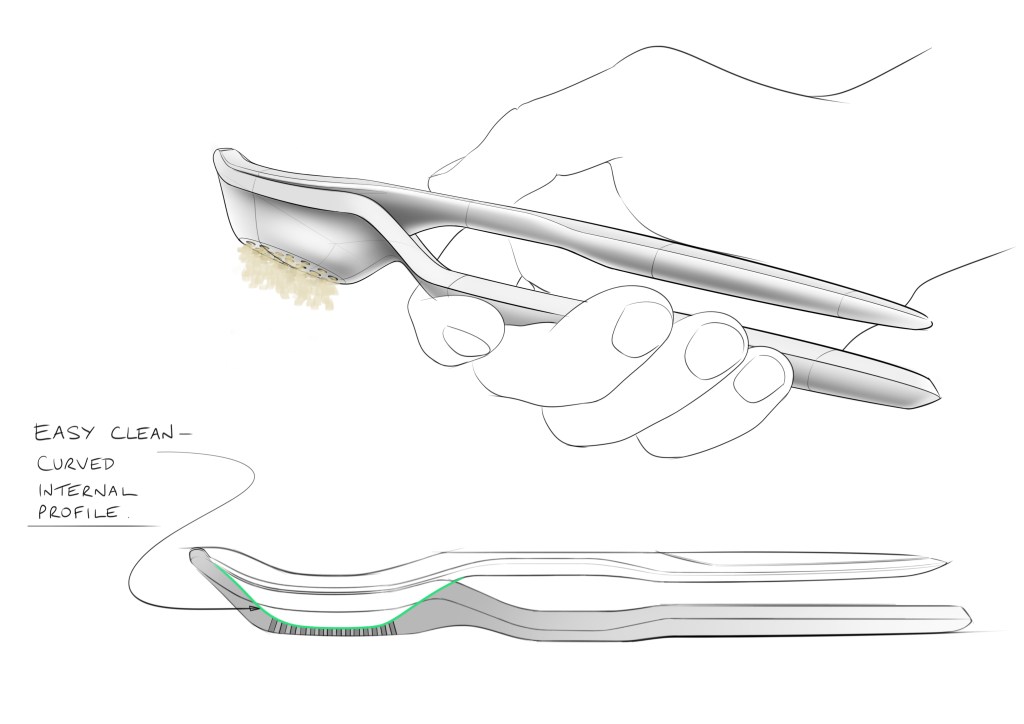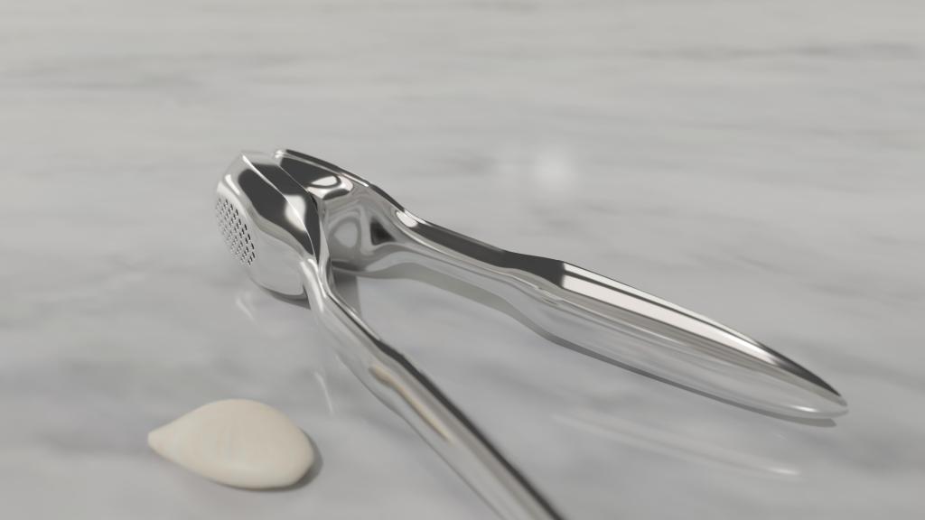 Easy clean, premium finish garlic crusher. Concept design.